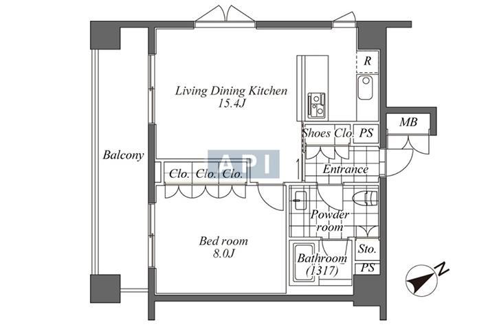 1BR | 37.29 sq.m. 401.2 sq.f. 11.3 tsubo |