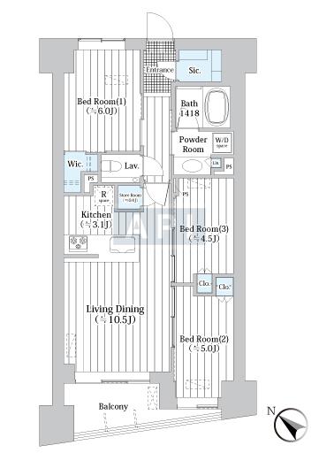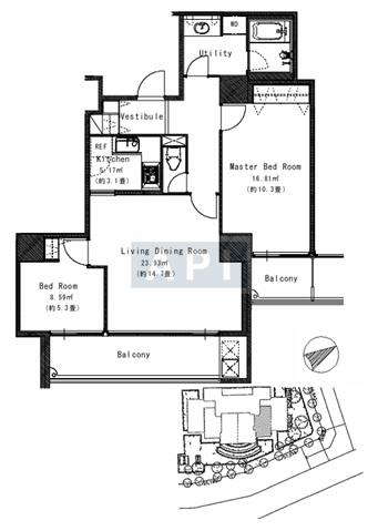 55.57 sq.m. 597.9 sq.f. 16.8 tsubo