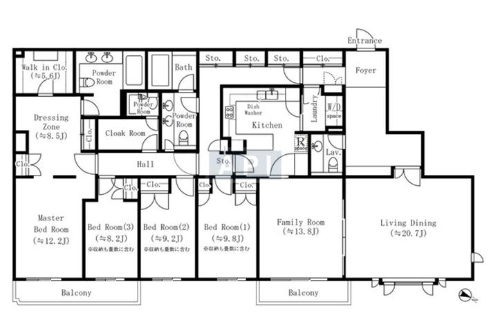 73.72 sq.m. 793.2 sq.f. 22.3 tsubo