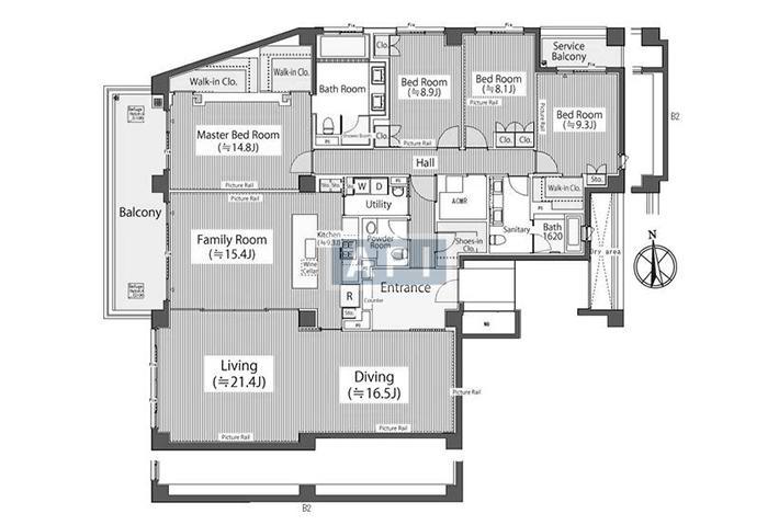 10 min walk to Hiroo St. on Hibiya Line 16 min walk to Azabu-juban St. on Namboku Line 16 min walk to Azabu-juban St. on Toei Oedo Line