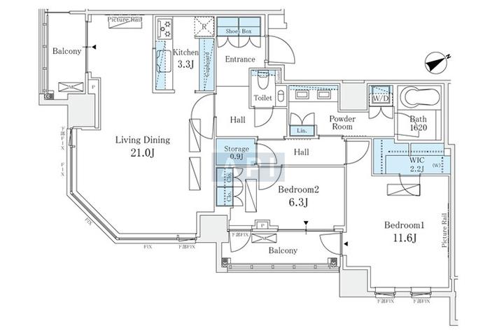 57.9 sq.m. 623 sq.f. 17.5 tsubo